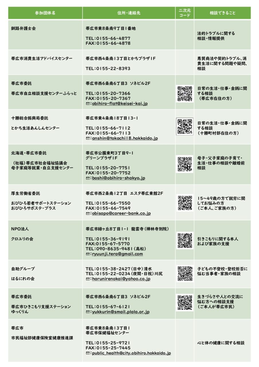 しごと・くらしの合同相談会事務局 帯広市自立相談支援センターふらっと内