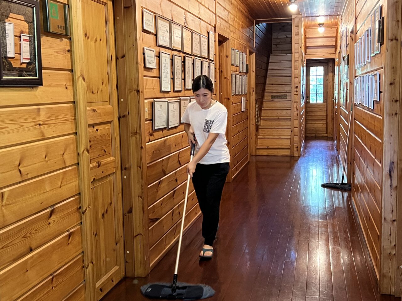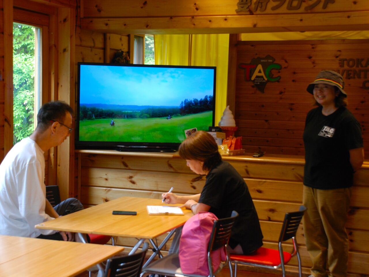 新得町屈足湖のすぐそばにあるTACの事務所は雰囲気バツグンのログハウス。まずはチームみんなで集まって本日のスケジュールを確認したら業務スタートです。