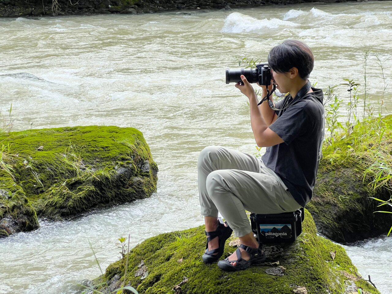 参加者の川下りの様子は、陸地を先回りして別のスタッフが撮影を行います。車で移動し、撮影スポットの川岸までを降りるなかなかハードな裏方仕事。その甲斐もあり、臨場感のある写真が撮れました。