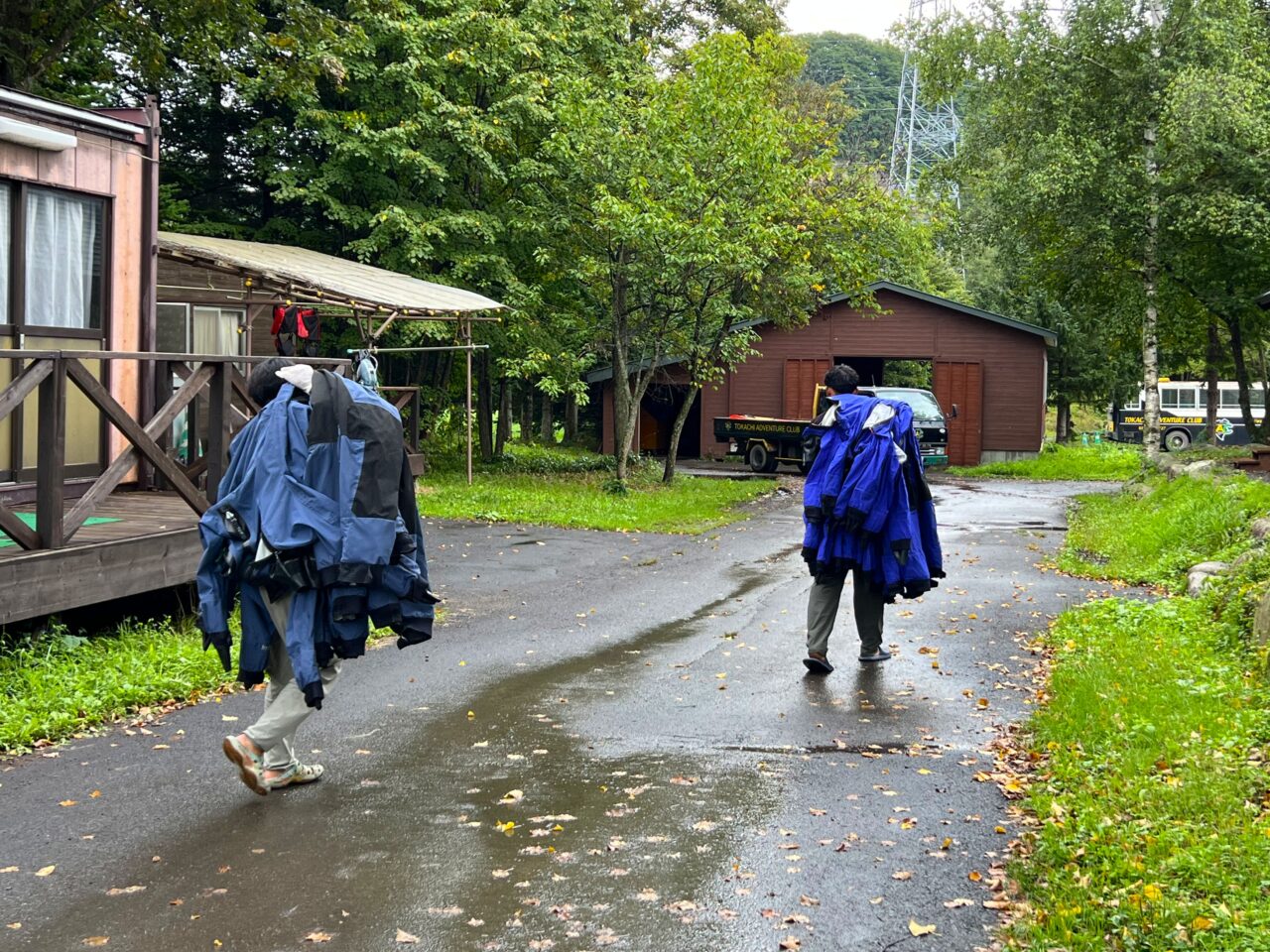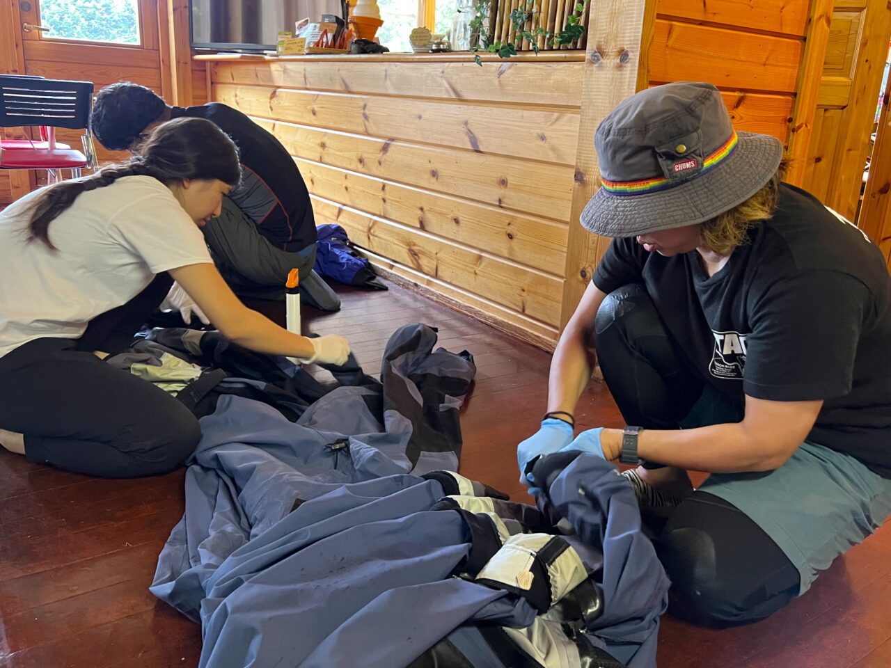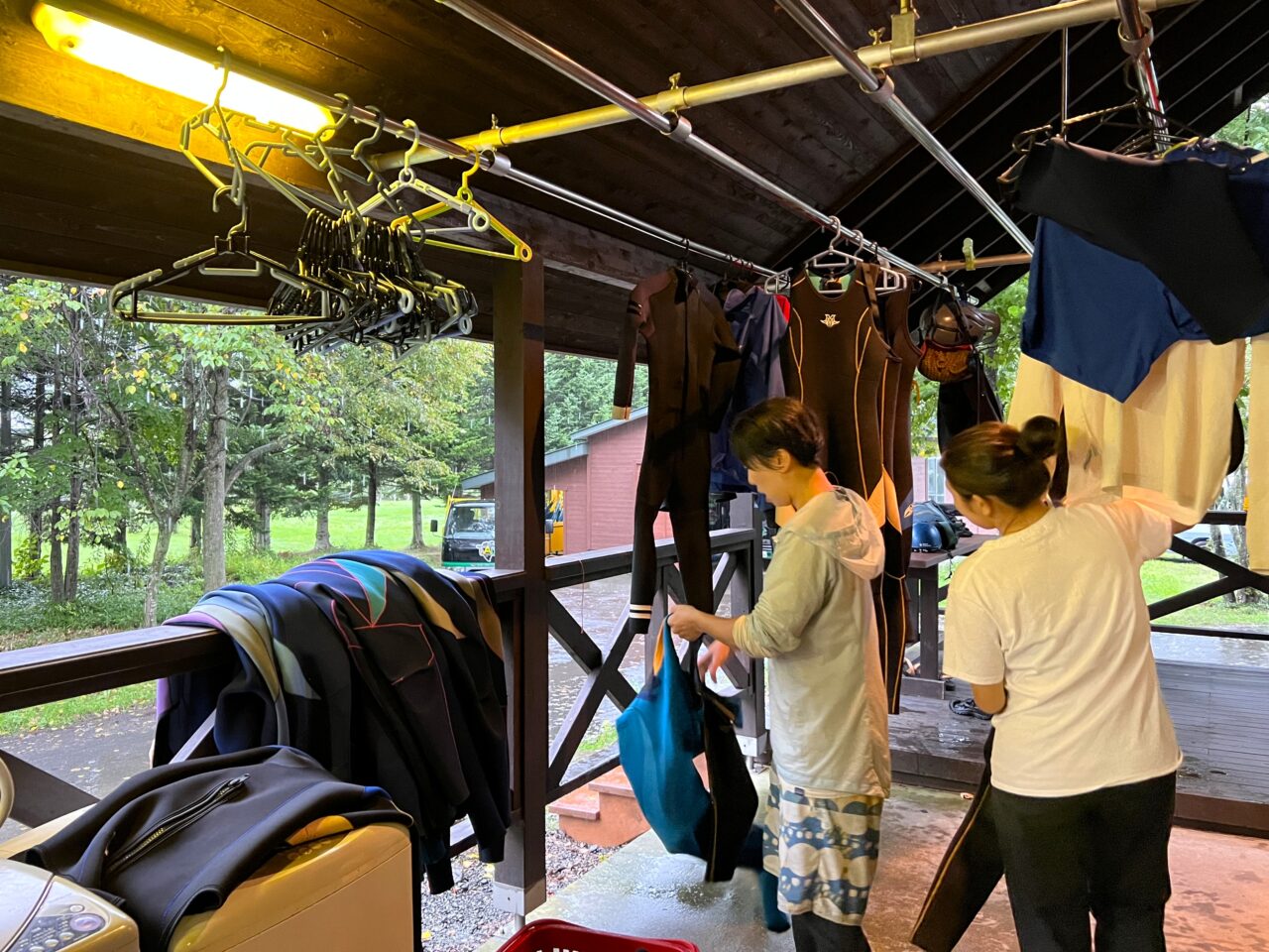 16時にはツアーが終了し、およそ20人分の装備を後片付けします。装備を洗う人、乾かす人など言葉がなくとも役割分担してテキパキとこなします。