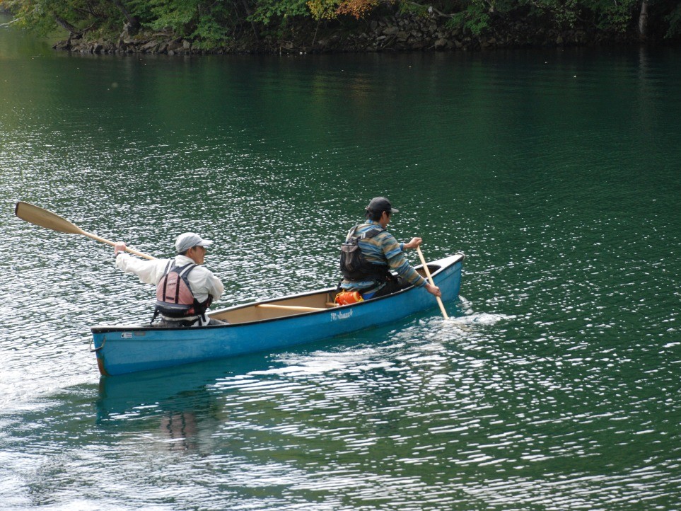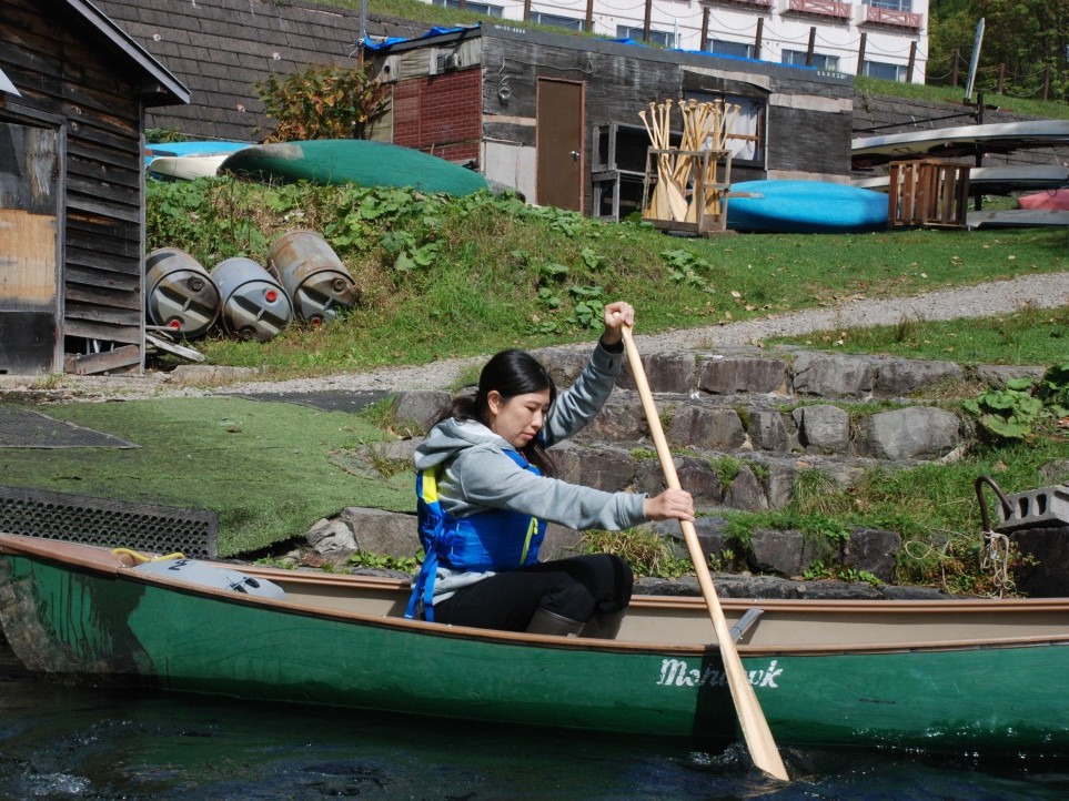 練習はここまで。早速カヌーに乗り込み、然別湖へと繰り出します。吉田さんはサブガイドとして1人乗りで同行。カヌーのツアーは参加人数で、サポートするガイドの人数も変わるのだそう。