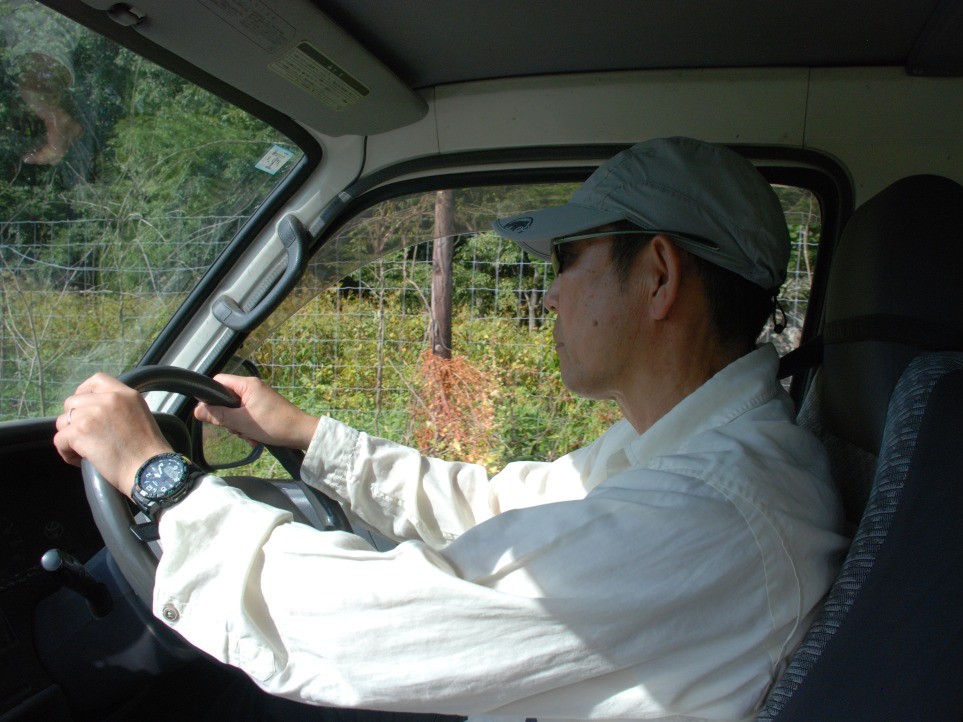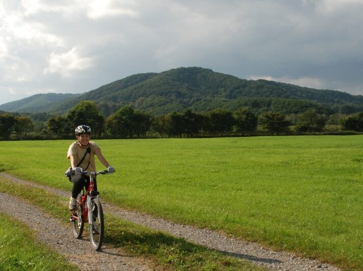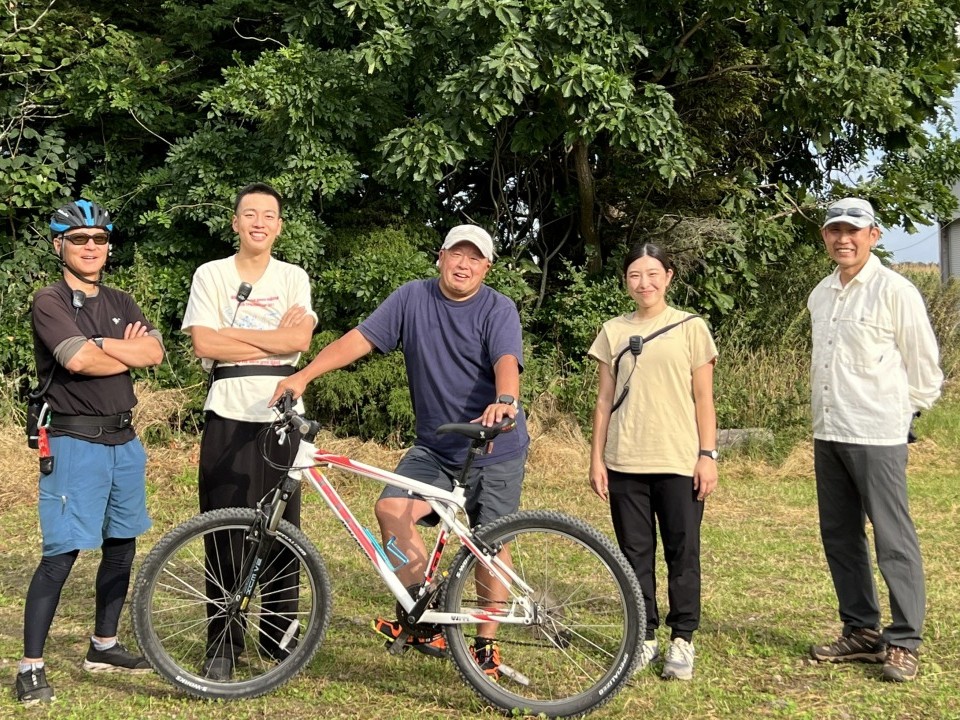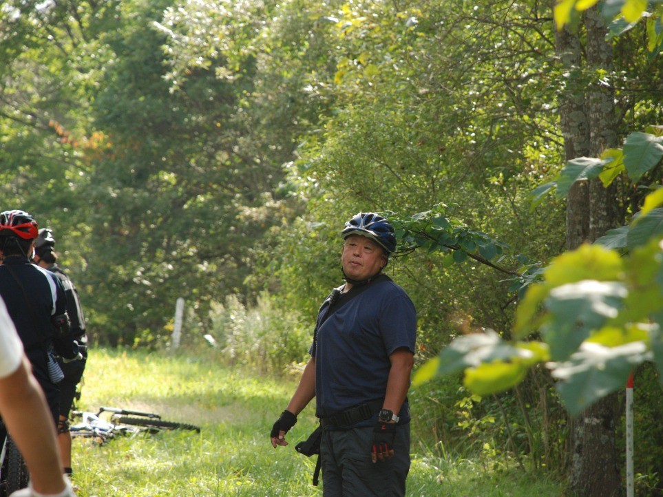 農道や林道、草原の道など全10kmほどのルートを走ります。今回は吉田さんも含めて、計4名のガイドがマウンテンバイクにまたがり、参加者を先導、サポートします。午前のカヌーツアーでガイドを担当した石川さんはサポートカーの運転手を務めます。