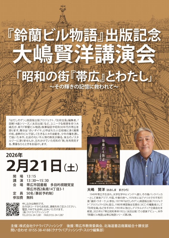 本イベントは、その出版を記念して開催される講演会。講師には、同書の著者であり十勝の歴史に精通する吉田政勝氏をお招きします。「依田勉三と晩成社の人々」と題し、過酷な環境の中で不屈の精神を持って大地に挑んだ勉三や、彼を支えた仲間たちの知られざるエピソード、そして現代の十勝へと続く開拓の魂について深く掘り下げてお話しいただきます。
