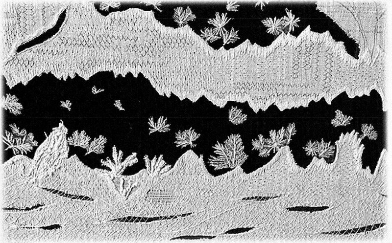 大きな白い刺繍の連作。ひと針ひと針を確かめるように、ゆったりと進む時間の積み重ねが布の上にやわらかな陰影と温度を生み出していきます。華やかさよりも「丁寧に暮らすこと」そのものを映し出すような静かな停まい。