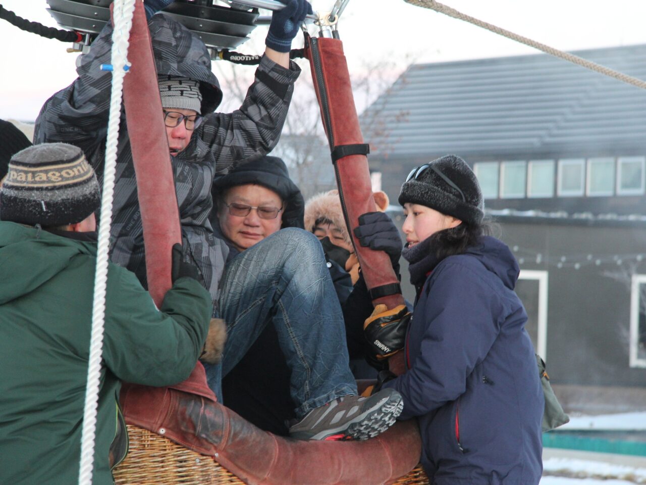 乗り降りする際は気球が浮いてしまわないよう、気球のバスケット内の人数をコントロールします。なるべく乗り降りが同時に行われるように参加者を促し、時には吉田さんも気球に取り付いて重しとなりながら、参加者の乗り降りをサポートしていました。