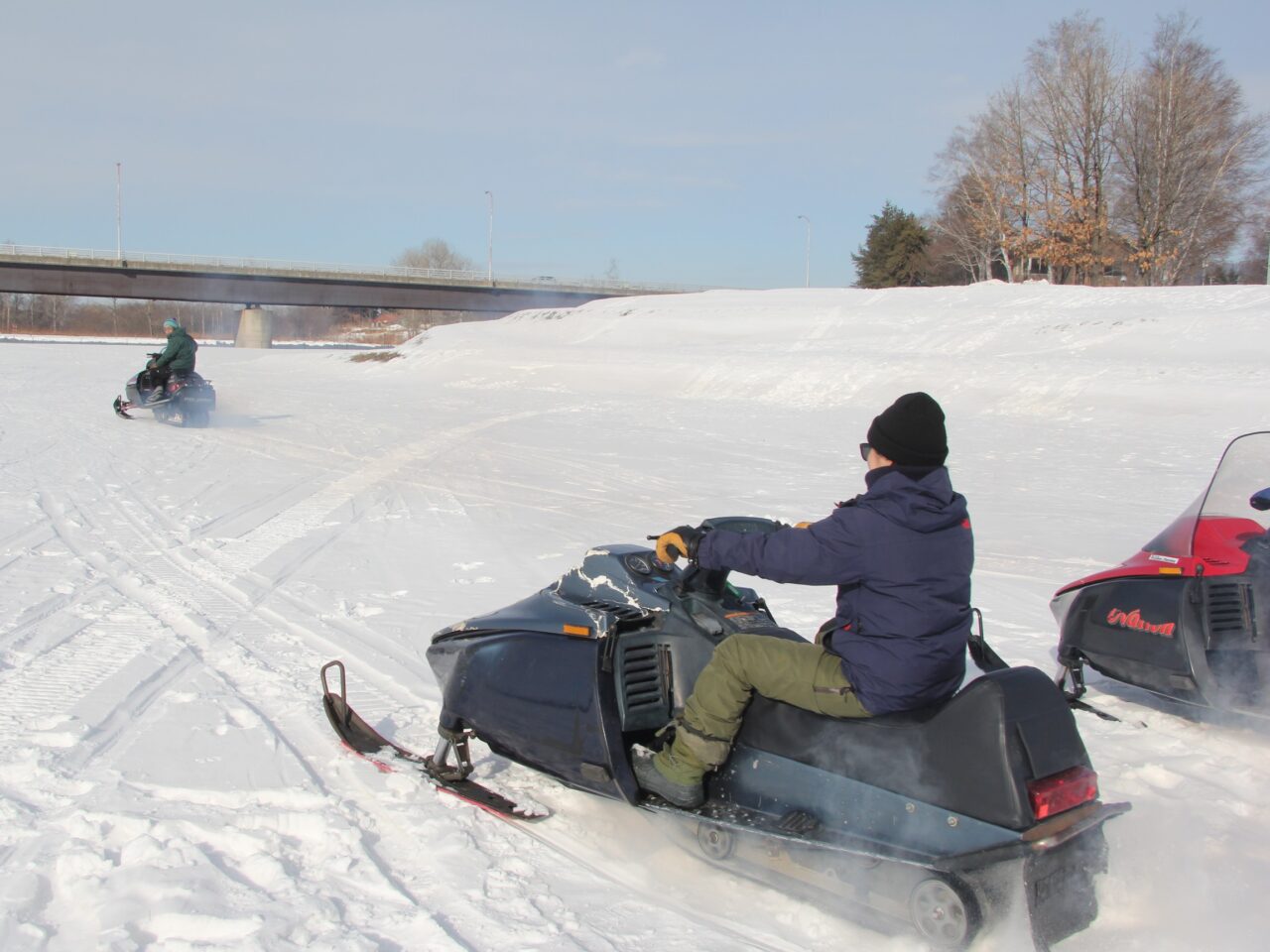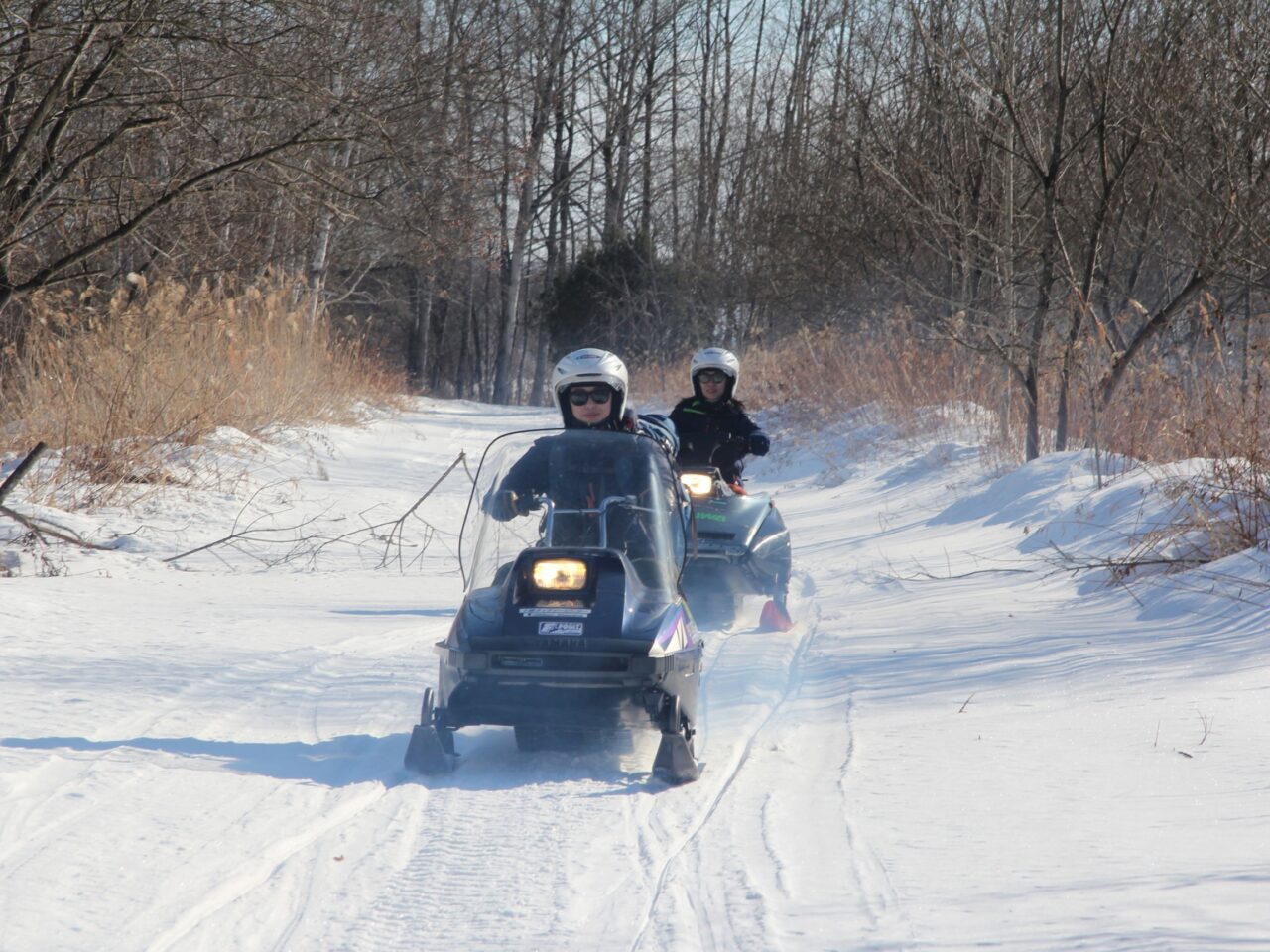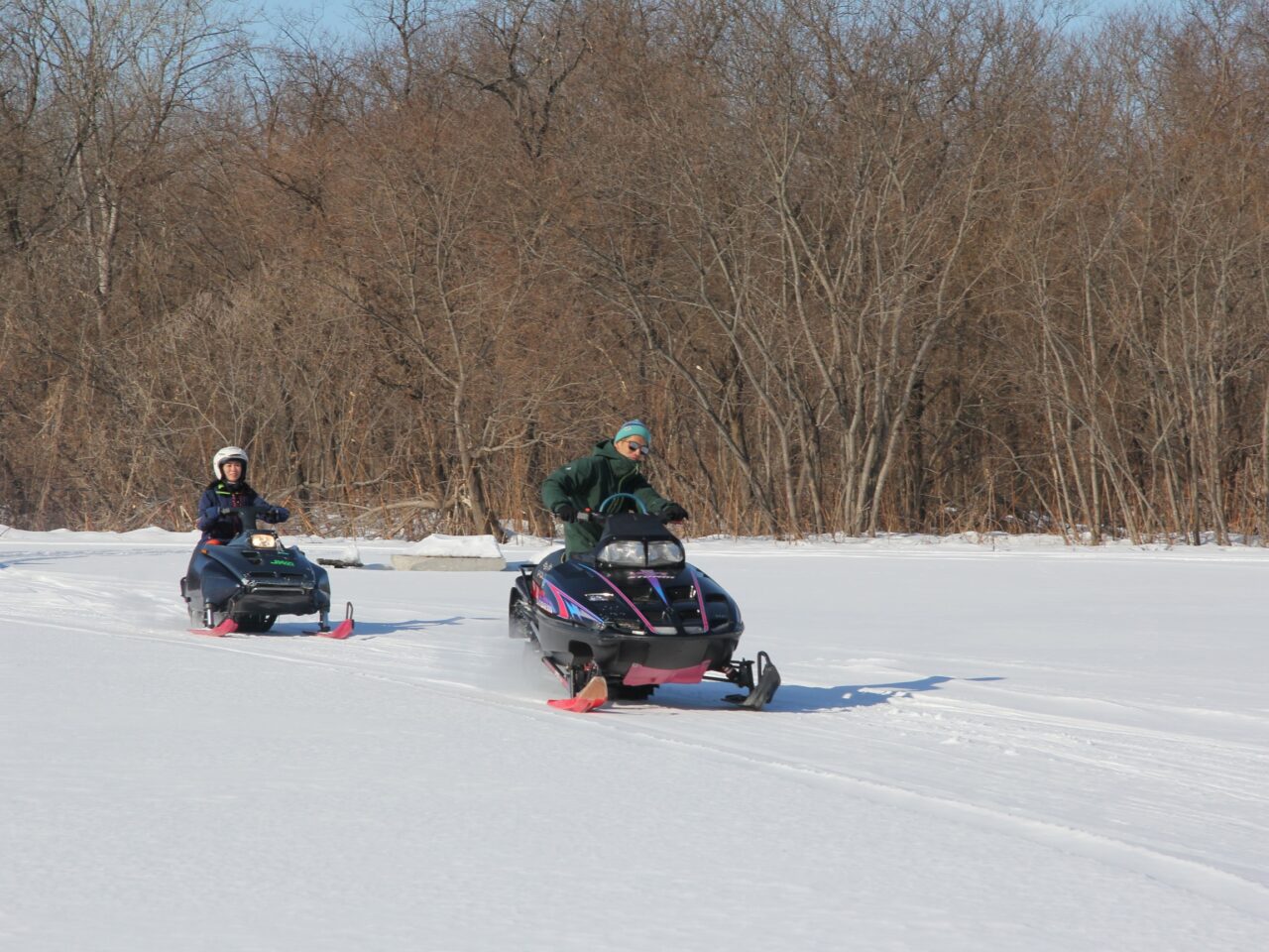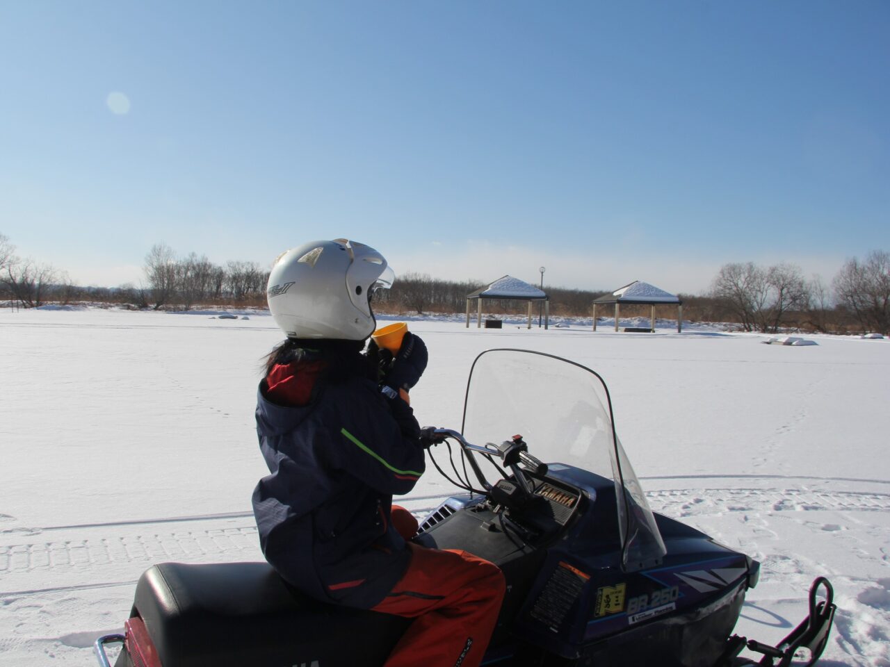 この日のスノーモービルツアーは午前中の1本のみ。気持ち良くリバーサイドの雪原や林間を走り抜けました。